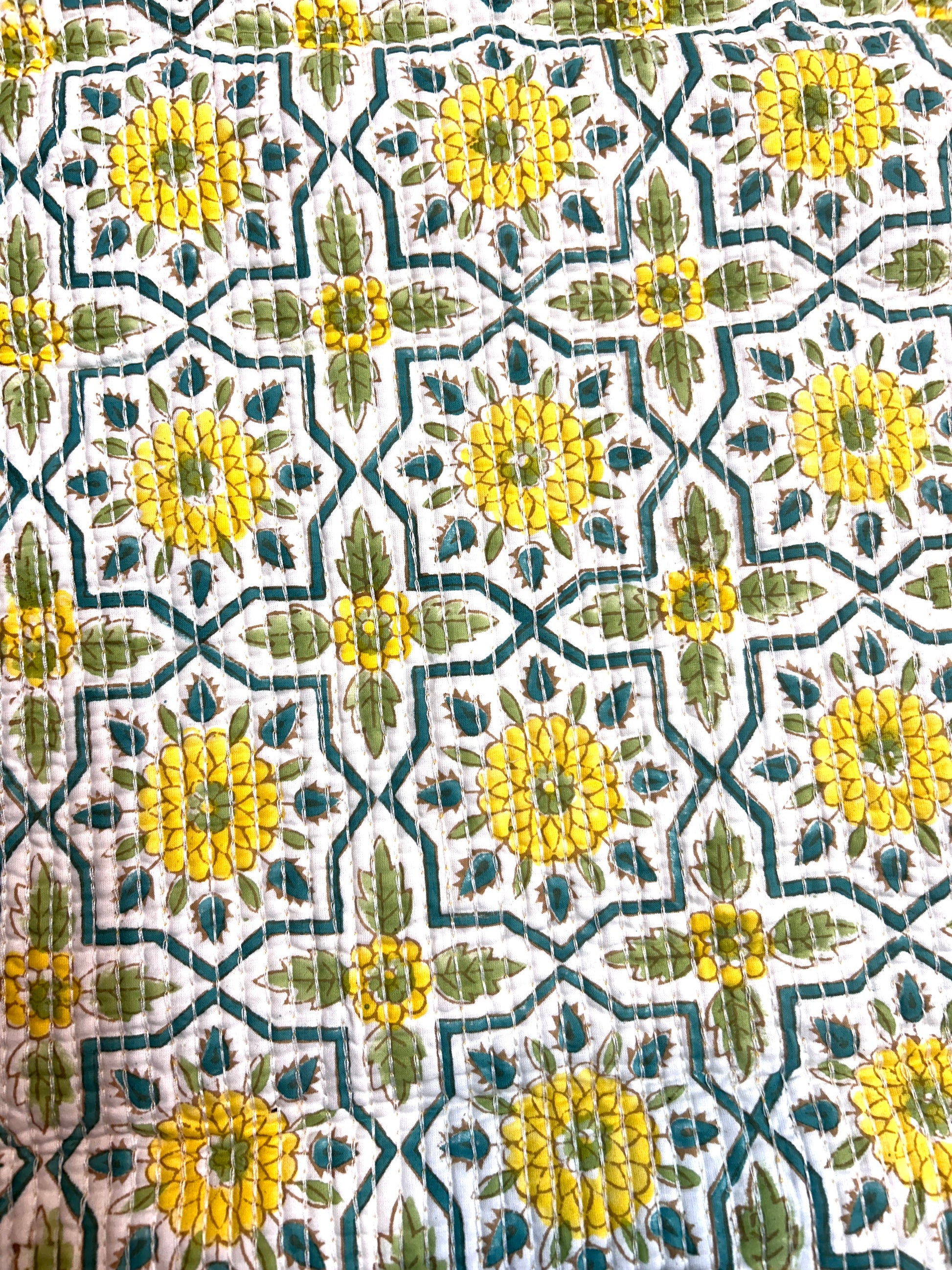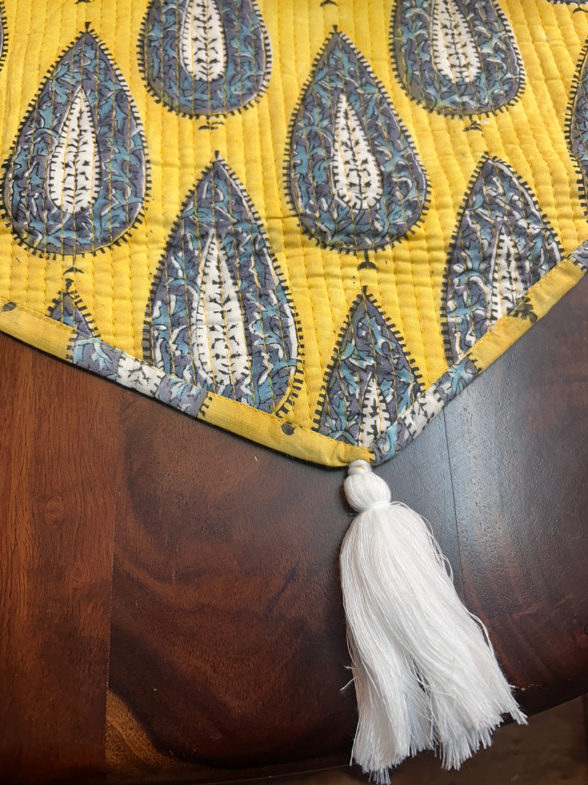 This Hand block printed table runner is quilted with beautiful tassels on both ends. These are also reversible allowing you to style in multiple ways.