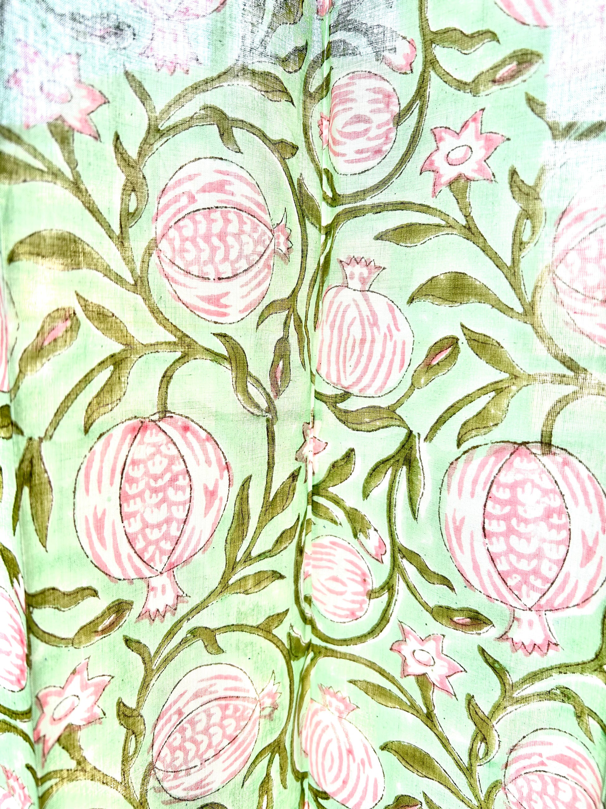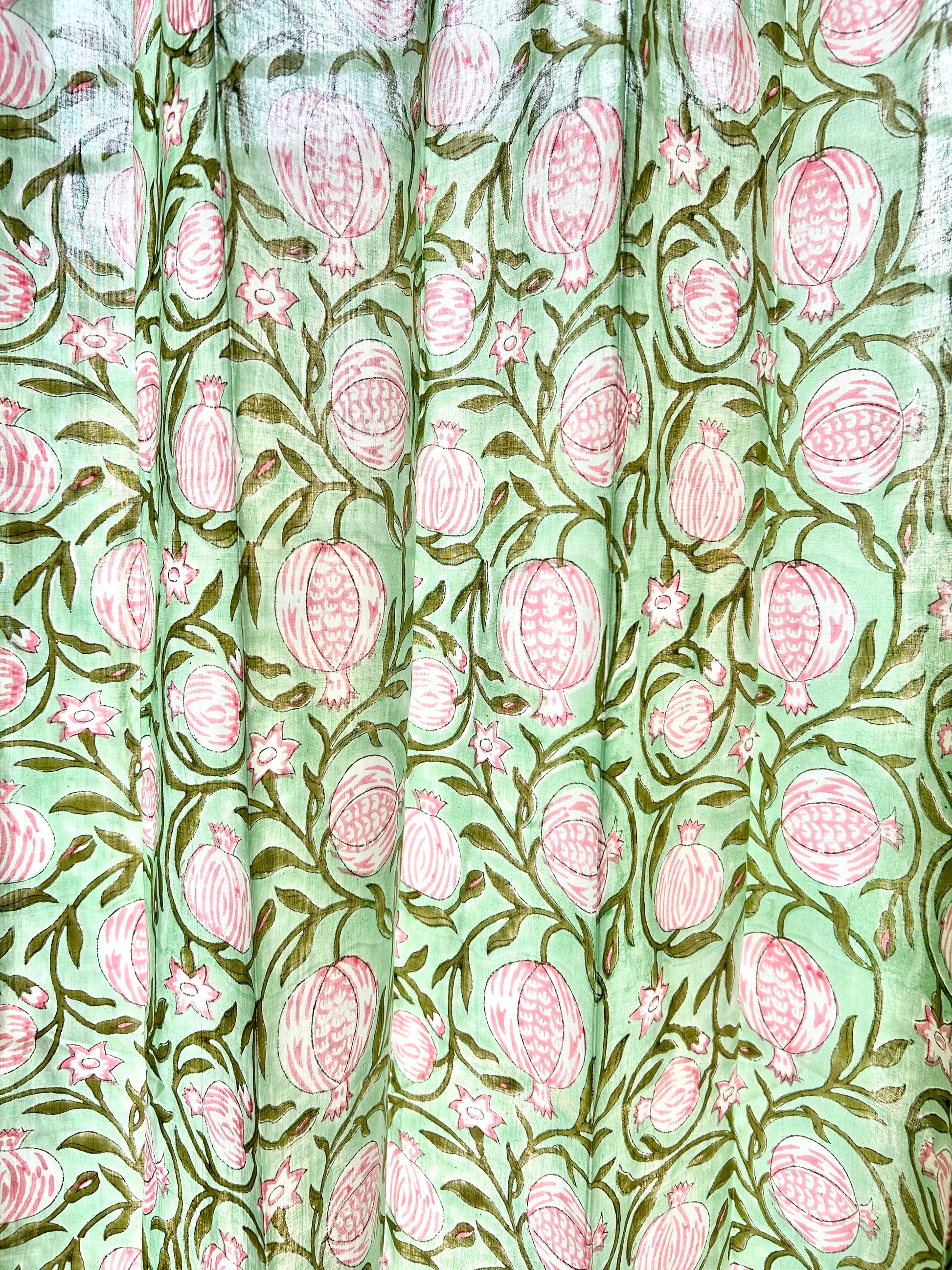 Pomogranate Green Block Printed Sheer Curtains