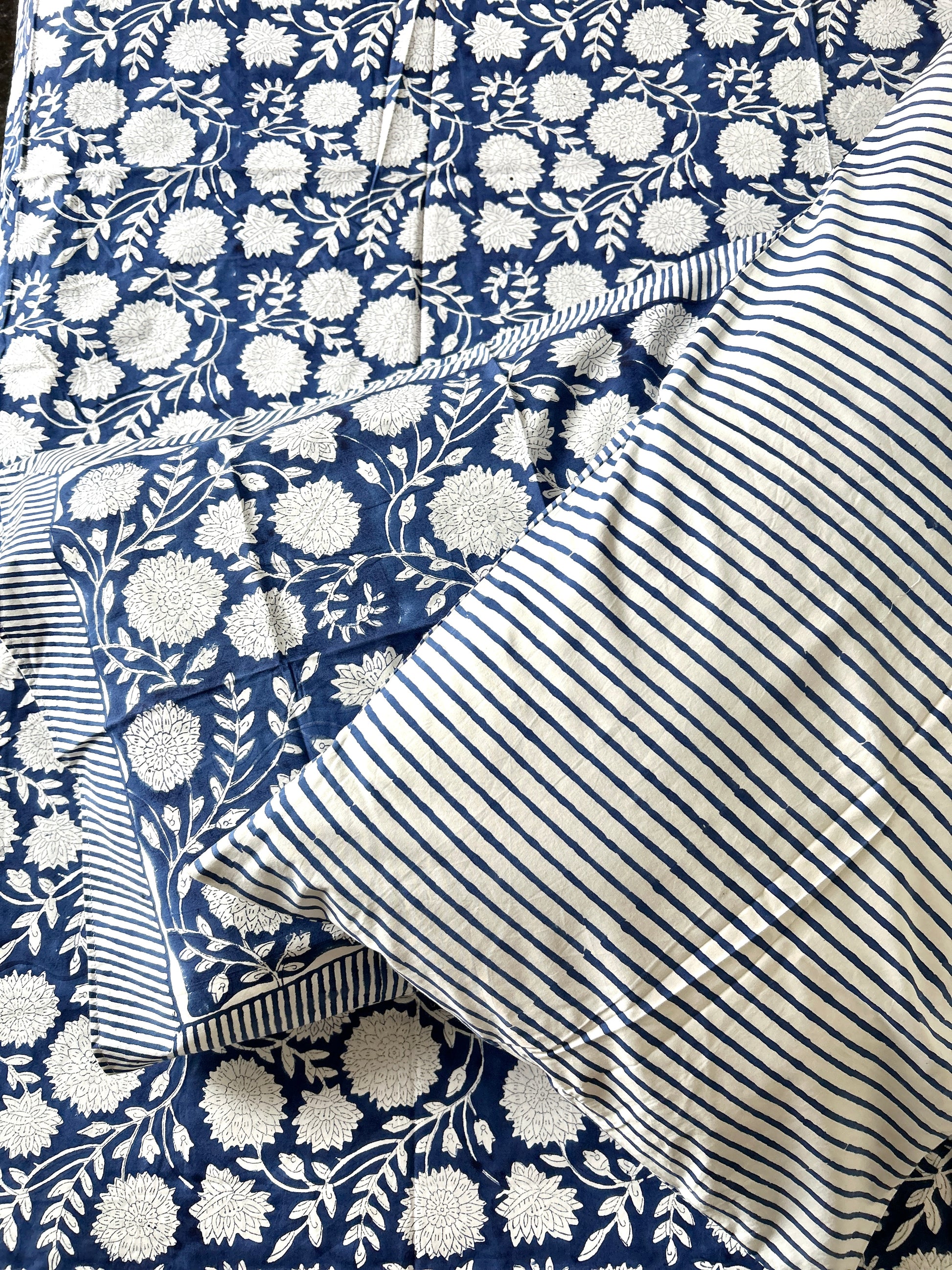 Navy Blue Block Printed Cotton Bedsheet(108x108)