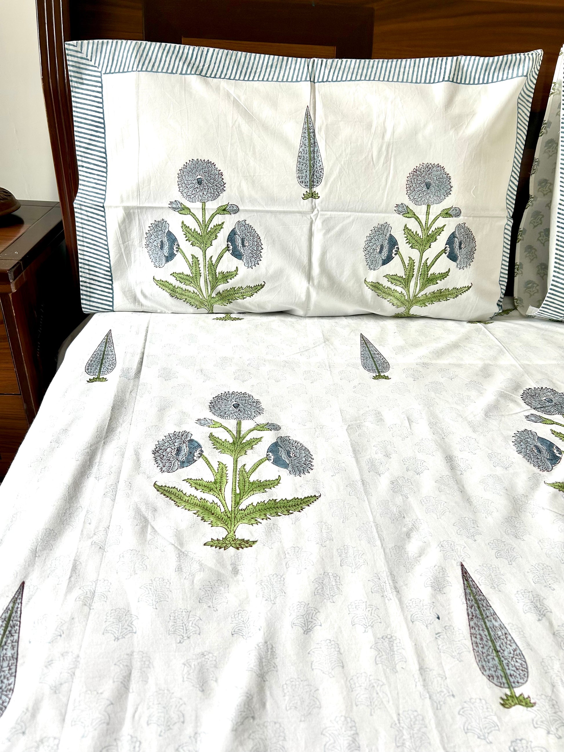 Shiya Block Printed White Cotton Bedsheet(90x108)