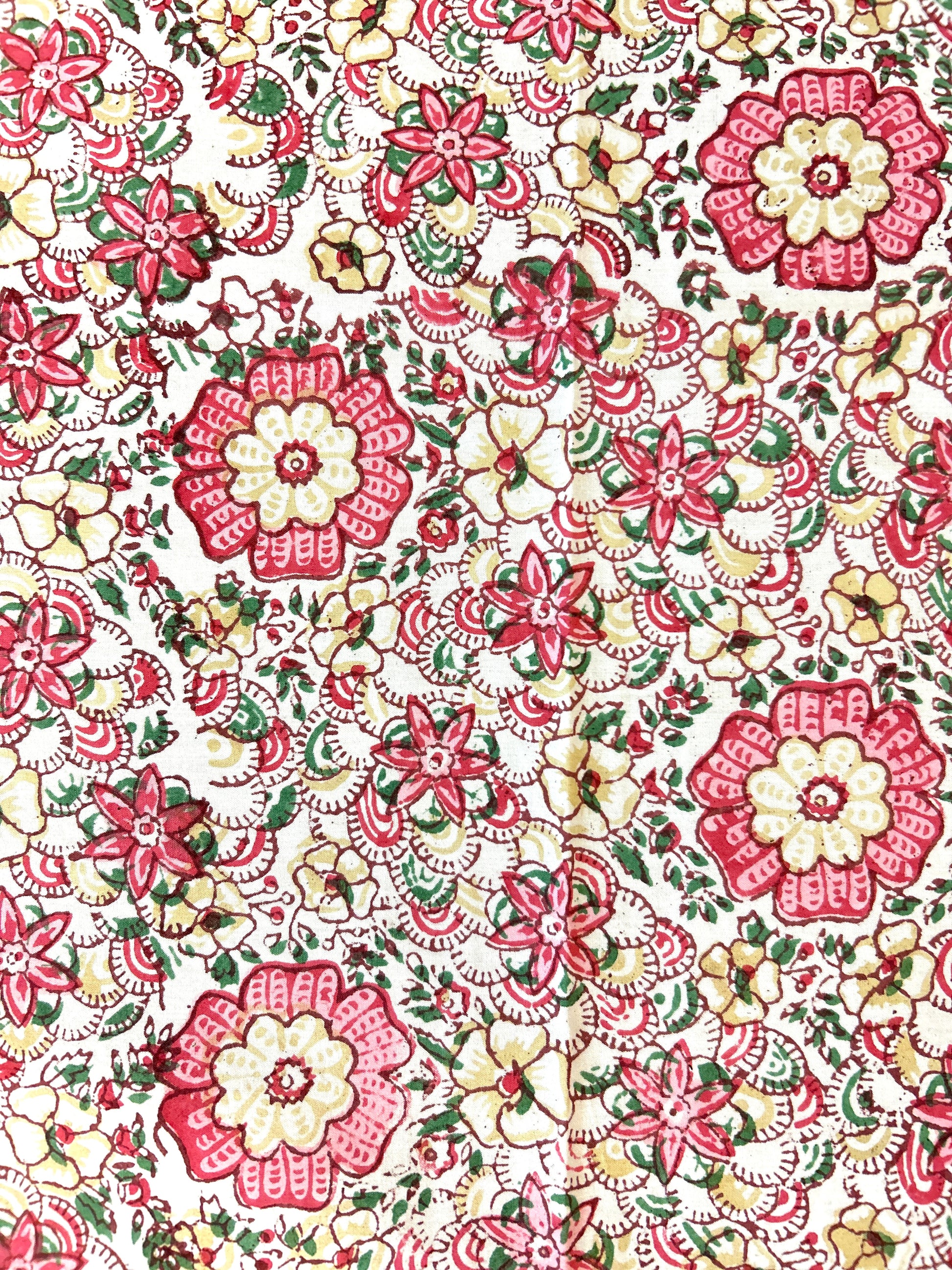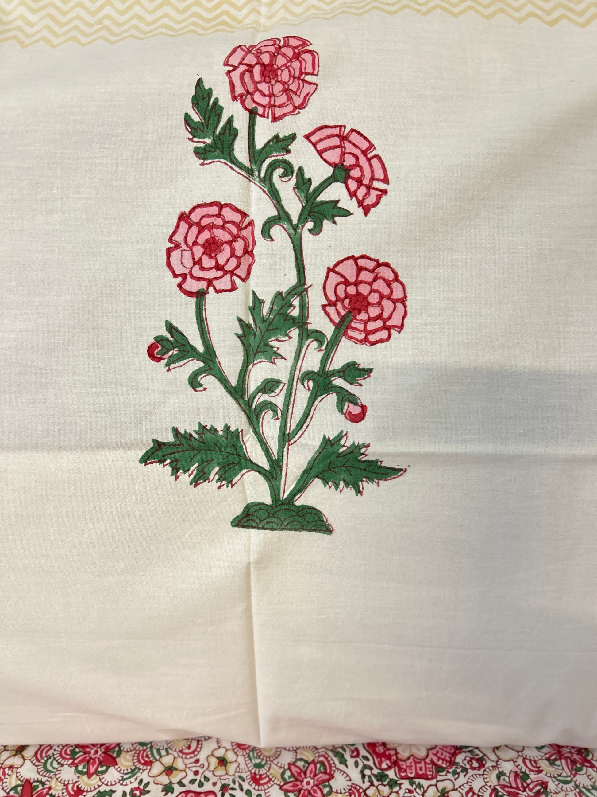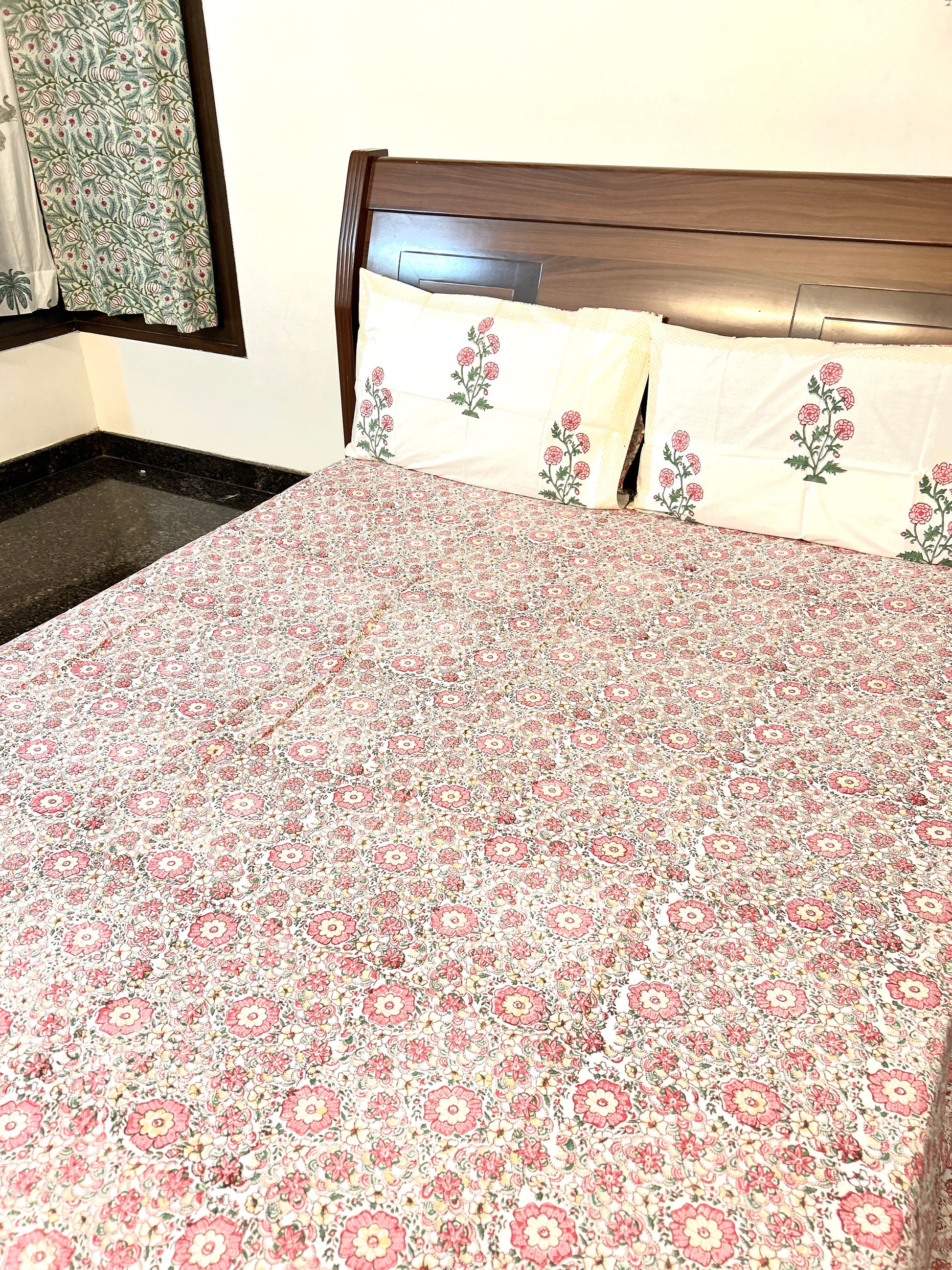 Pink floral Block Printed Cotton Bedsheet(90x108)