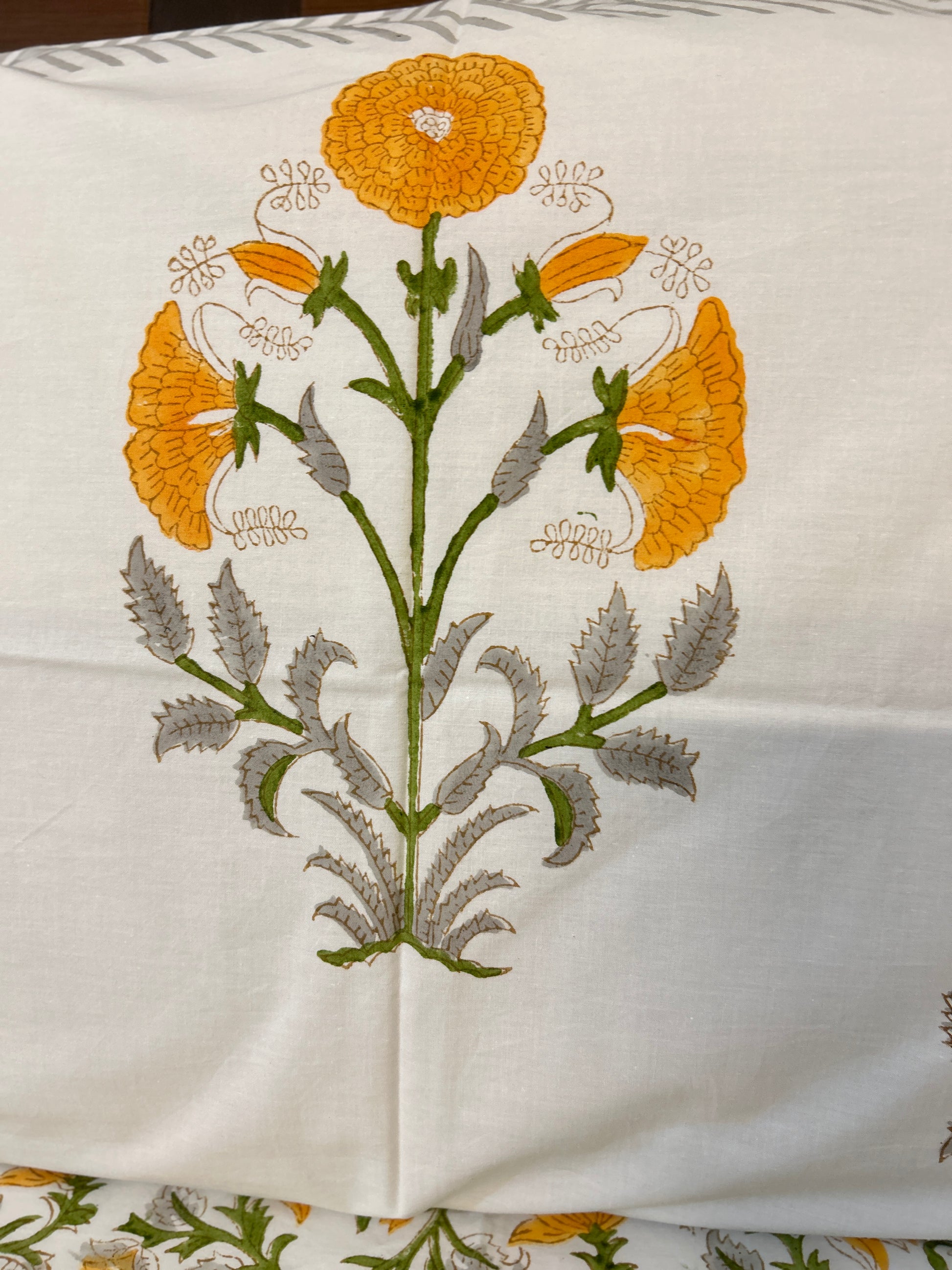 Yellow Vines Block Printed Cotton Bedsheet(108x108)