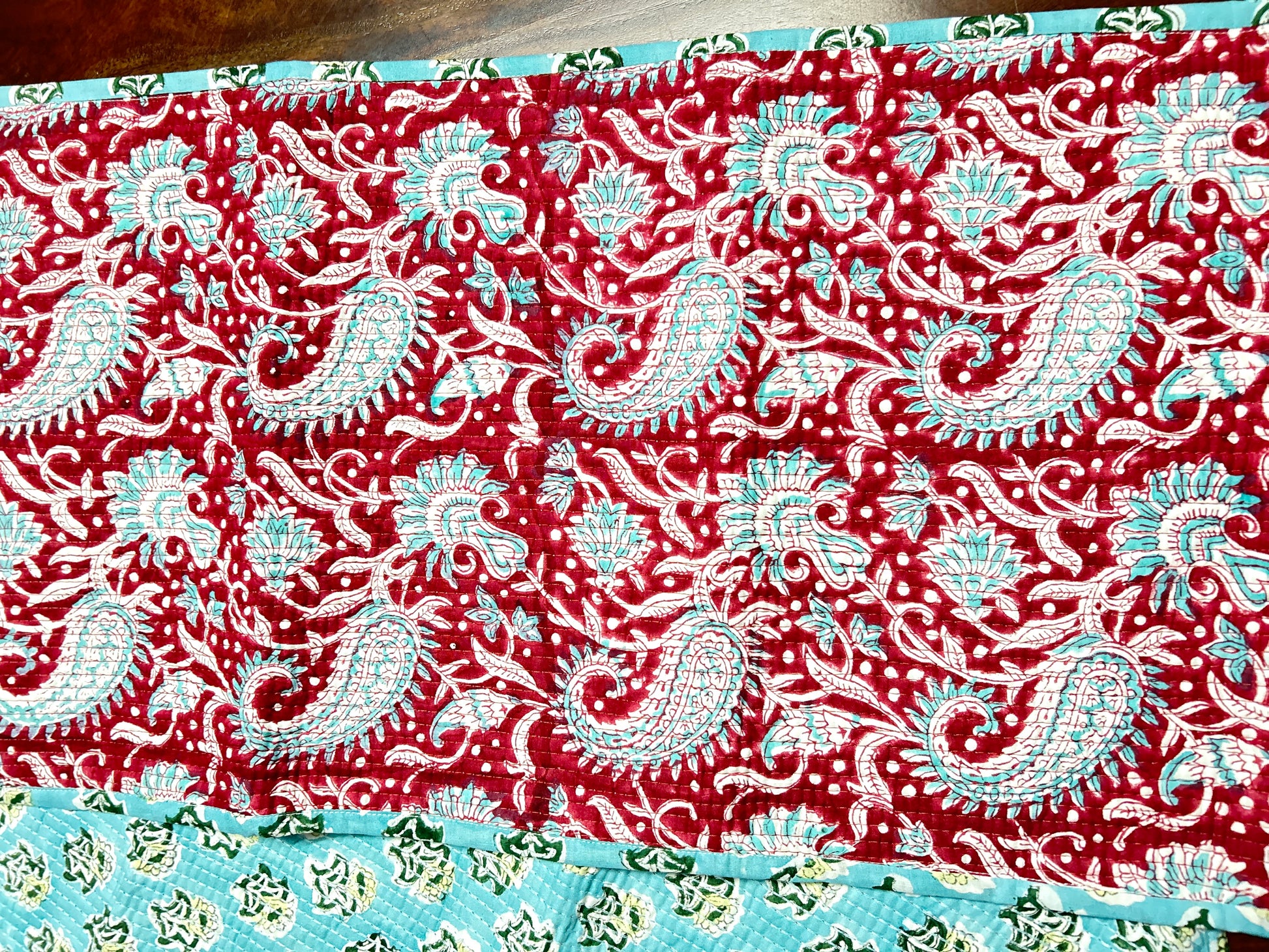 This Hand block printed table runner is quilted with beautiful tassels on both ends. These are also reversible allowing you to style in multiple ways.