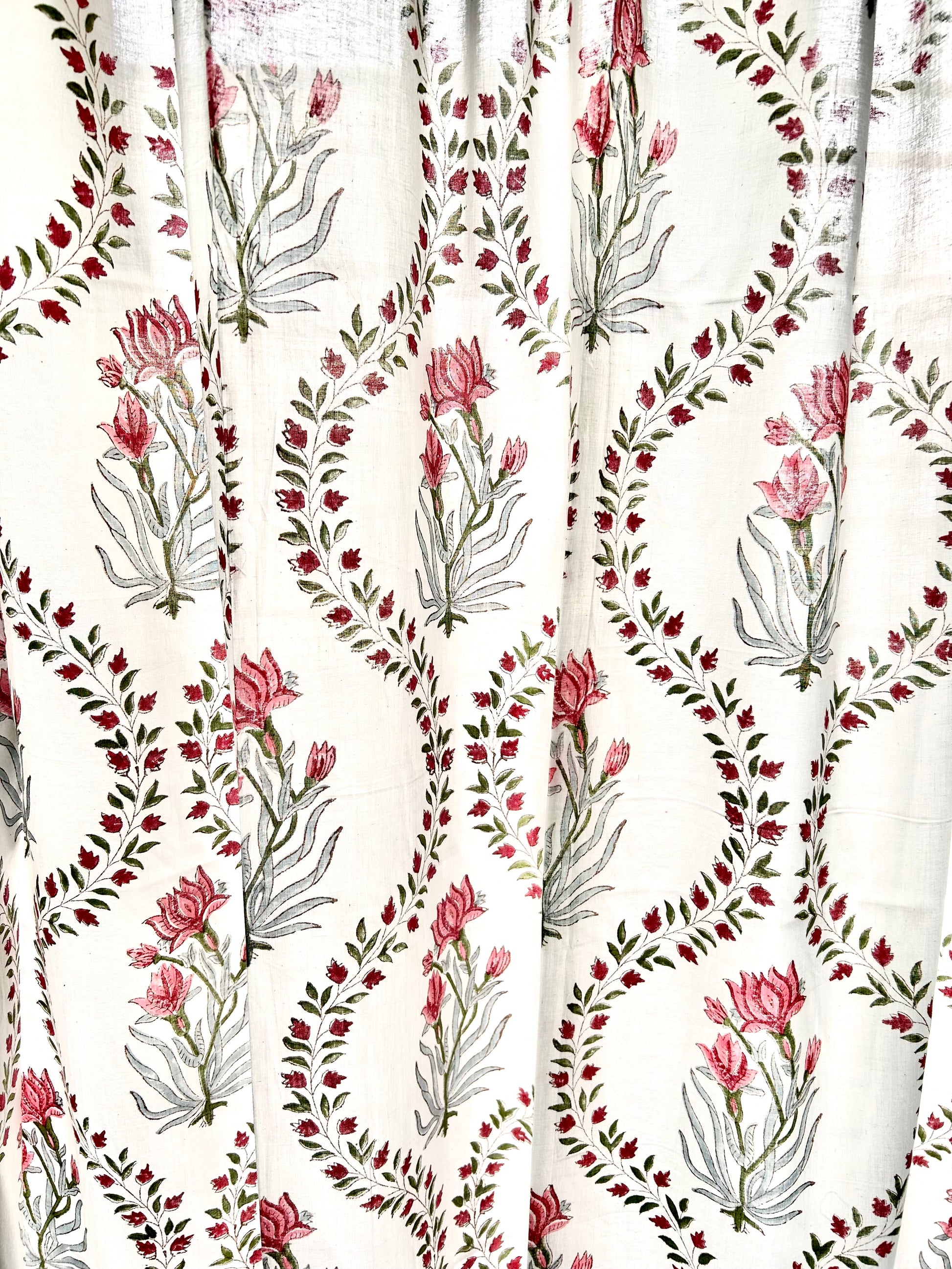 Red Vines Block Printed Sheer Curtains